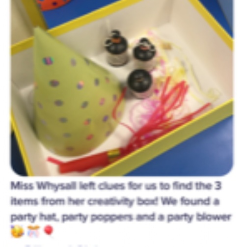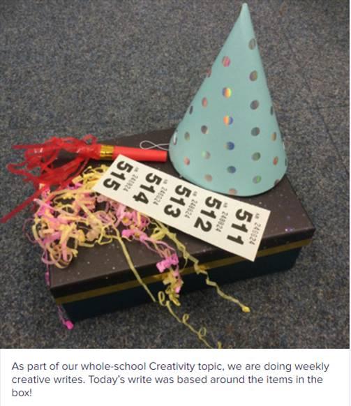 As part of our whole school creativity topic, Miss Whysall delivered each class a ‘Creative Writing Box’. The children were asked to use their imagination to create their own story. The children were fantastic at this!