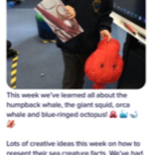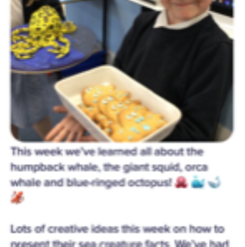 The children in Year 1 and 2 enjoyed learning facts about sea creatures and presenting their findings in creative ways. The children carefully used their imagination to think of different ways to present their facts.
