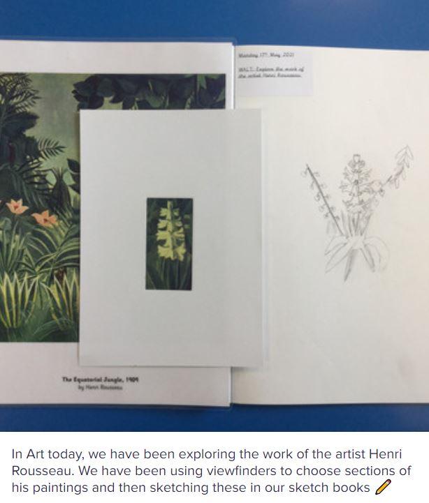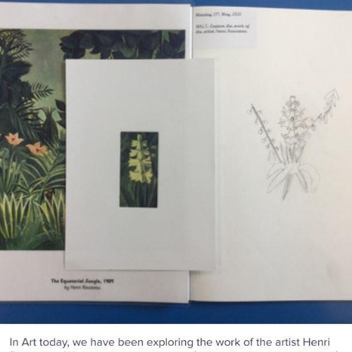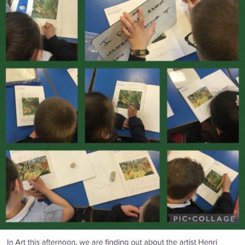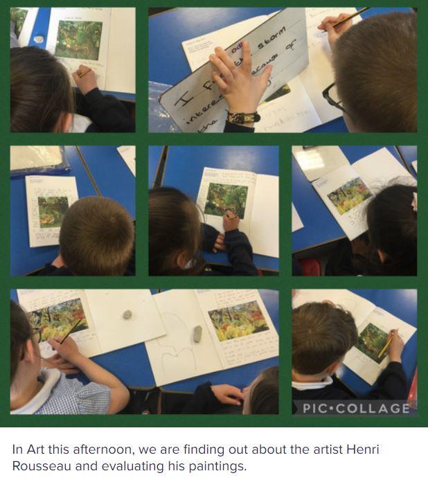 During our whole school Art Week, Year 3 were inspired by Henri Rousseau’s artwork. They collaborated to produce their own class canvas, inspired by Tiger in a Tropical Storm.