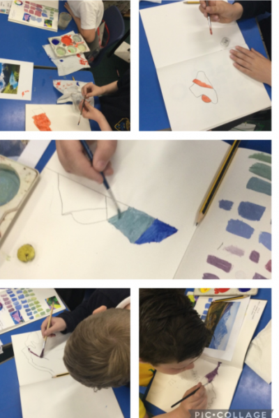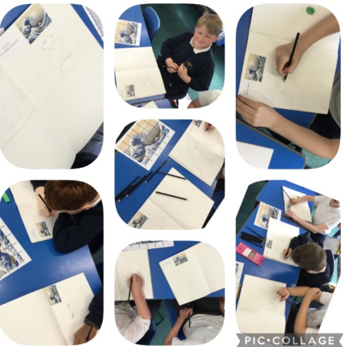 During out Art Week, Year 5 focussed on David Hockney’s abstract landscapes and then looked at Hokussai’s The Wave. They created a collaborative piece of art on canvas, inspired by the artists and skills they had studied.